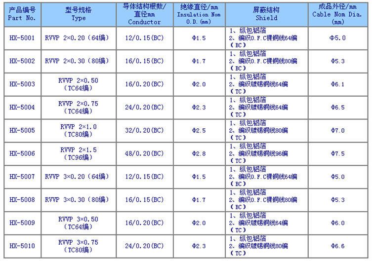 内导体:O.F.C裸铜线绞合(BC)或镀锡铜线绞合(TC)
